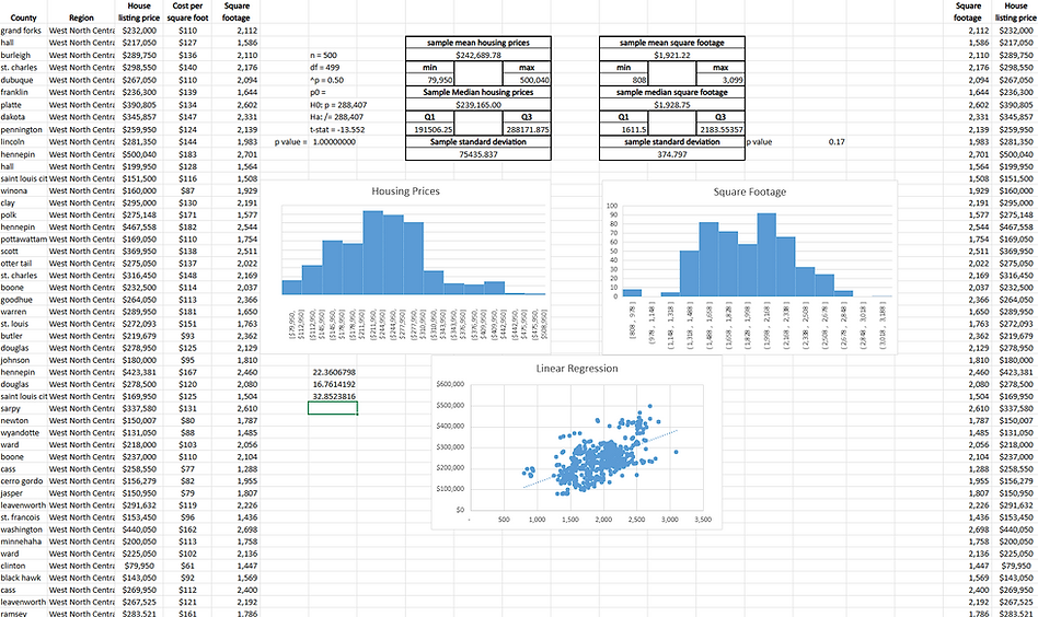 This is a project I took for a statistics class where I needed to find the average, median, and maximum values in relation to a list of data provided to me and other information such as a test-statistic. I then had to use my calculations to graph my data. This required problem solving skills and advanced knowledge of Excel.